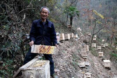 据悉,今年68岁的祝师刚在19岁时一次走亲戚时,巧遇亲戚正在收割蜂蜜。当时老祝处于好奇就随手扮下一块带蜂蝶的“蜂蜜”食用,尔后他觉得蜂蜜特别甜,不同于一般的白糖、红糖,次年的三月份他再次来到亲戚家分了一箱蜜蜂带回家养殖,他由于勤奋好学,多次求师学艺,虚心向他人学习,逐步掌握养蜂技术,他充分利用自家房前屋后森林茂密、花源植物丰富及自然条件优越的优势,潜心养蜂,蜂群数量从刚开始的一箱发展到现在81箱,每年产蜜达800多斤,收入超过3万元。由于祝师刚生产的蜂蜜花源正道,生产过程中不参杂使假,深受消费者欢迎,目前已销售到神龙架、十堰等地,蜂蜜供不应求。