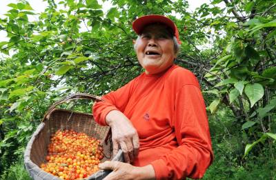 2010年5月3日,年近八旬的鄢妈妈醉在樱桃谷里。当日,湖北省南漳县的一群老人在五一小长假中,不给儿孙添负担,自发组织到该县城关镇榆树岭村的樱花谷里去采摘刚刚成熟的樱桃。老人们说:放假了,让孩子们玩自己的,我们也出来轻松轻松。