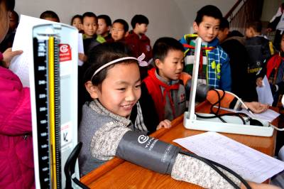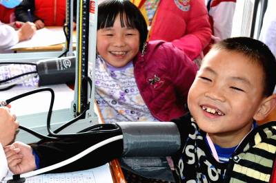 (通讯员 杨显有) 11月25日,湖北省郧县柳陂镇中心小学学生正在接受20余项健康检查,不花一分钱。11月以来,该县学生体质健康检测中心,对39410名中小学生进行健康体检,体检项目涉及到内科、眼科、口腔科、外科、形体指标、生理功能等具体内容包括20余项。每人15元共计59万余元的检测费用从学校公用经费列支,学生不花钱。
