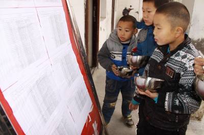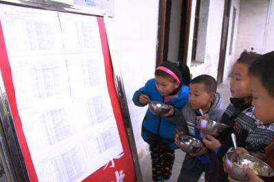 11月26日午餐时间,竹山县宝丰镇红卫小学的学生正在观看该校的农村义务教育学生营养改善计划实名制公示栏。该镇各学校对营养餐资金实行专户管理,专账核算,专款专用,严禁挤占、挪用、截留或套取行为,把好食品原料采购关、信息公示关、档案材料关,阳光操作学生营养餐,真正让这项惠民政策落到实处。