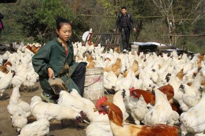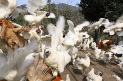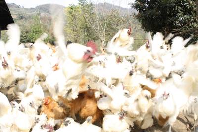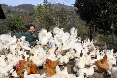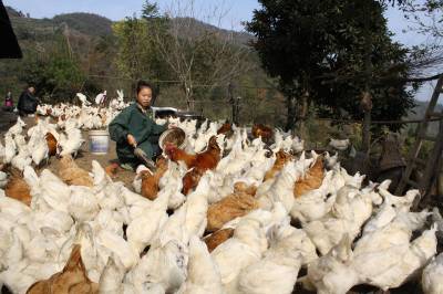 11月26日,竹山县城关镇高二迎生态养殖专业合作社社员谭敏正在喂养“土飞鸡”。 “土飞鸡”又名郧阳大鸡,是竹山县地方特色家禽保护品种,以乌皮、乌骨、乌脚等特征被称之为“三乌鸡”。2013年10月,县工商部门帮助该村生态养殖专业合作社投资20多万元,在城关镇二道坊村的马家坡上承包租赁了10多亩山林荒坡,创办山林散养乌鸡基地,第一批始终饲养了1万多只,年创收10多万元。目前,该县工商部门扶持种植、养殖产业等方面的农民专业合作社已发展221家,为农村经济发展注入了强劲活力。