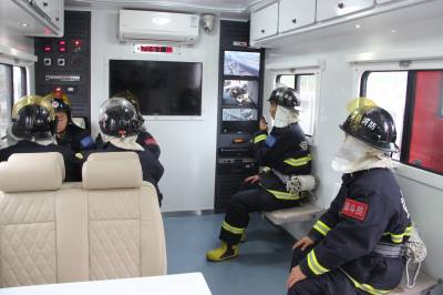 据了解,该车设有工作舱、休息舱、生活舱,该车投入执勤后将改变过去消防官兵船闸护航长达4、5个小时冒严寒、顶酷暑、风餐露宿的执勤环境。该车投入执勤后也将改变了过去船闸护航依靠人力、凭借经验的工作方式,实现了火情监控、力量调度、指挥决策的数字化、信息化辅助功能,为三峡枢纽五级船闸消防安全提供了有力保障。