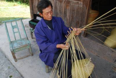 在宣恩县侗乡长潭易家坪村6组有一位年逾6旬的老人王义方,从小跟父亲学得一手好篾匠活,他编制的花背篓远近闻名,不仅篾细篾薄质量好,且织的漂亮绚丽多彩,经久耐用。周围团转嫁女的、拜年的、走人家的来他家络绎不绝,提前订货。目前他卖的花背篓400元1个还抢不到手(大约2个工能编制起一个花背篓),不仅增加了家庭收入,更重要的是使这一即将消失的非物资文化遗产手工艺产得到保护发杨(展)。