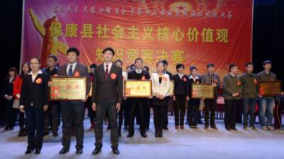 11月27日晚,保康县举办社会主义核心价值观知识竞赛。 当晚,参加决赛的县纪委、县国土资源局、县商务局等8支代表队,经过激烈角逐,最终县纪委代表队以绝对优势摘取桂冠。 据了解,此次比赛为期近4个月,全县共有40支代表队经过预赛,有8支代表队进入决赛。 培育和践行社会主义核心价值观是党中央确定的一项长期工作任务。为了加大宣传教育力度,夯实全县人民团结奋斗的思想基础,凝聚社会共识,为建设美丽幸福新保康奉献力量,积极传播正能量,弘扬时代主旋律。(视界网 陈泉霖 摄)