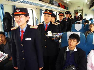 【签约摄影师罗超】五一期间,襄樊至武昌间加开绿皮平价临时L7537/8次旅客列车,车上工作人员都是来自北京交路退乘归来员工。他们牺牲了正常假日休息时间,仍然坚持以北京线路”红旗列车”高质优服的标准,出现在临时列车上,最大限度地满足省域城际旅客假日出行需求。图为列车始发后服务小分队成员致欢迎辞并提供商品送水服务。