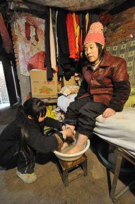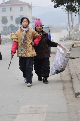牵着盲母拾荒的女孩5月9日,母亲节到了。在宜昌市夷陵区龙泉镇街头,每天清晨或傍晚,就会出现一个令人动容的画面,一个衣着俭朴的小女孩,一手拿着火钳、塑料袋,一手牵着失明的妇人游走在大街小巷,拾捡废品。是什么让如花的女孩承受着如此的生活之重,小小年纪的她又是怎样去面对这人生考验的呢?宜昌市夷陵区龙镇中心小学10岁的女孩秦迎春,母亲双目失明,父亲身患多种疾病,一家人蜗居在一间低矮的、四面通风的瓦房内。从5岁多开始,她便靠拾荒来维持一家人的生计。多少次,她曾想躺在妈妈的怀里撒撒娇。好多回,她很想感受一下家庭的温情。然而,秦迎春却不能!她每天放学后,首先是抓紧时间完成作业,再做一些力所能及的家务活,紧接着就拿起拾荒口袋,搀扶着母亲走出家门。同学们看到她扶着母亲在街头拾荒的情景后,便给她取了个绰号叫”垃圾姑娘”。她忍受不了这个外号,回到家中泪水簌簌地往下淌。听着孩子的哭泣,失明的母亲也黯然泪下,伤心不已。然而,秦迎春表现得十分坚强,她在逆境中自强自立,一边求学一边拾荒,她还细致入微地照顾双目失明的母亲,经常给父亲洗脚。她的故事感动了很多人。本报视界网黄翔曹文乾摄