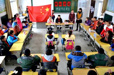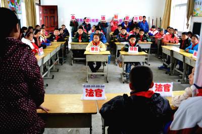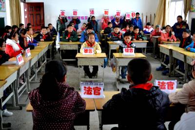12月3日,湖北省郧县柳陂镇中心小学六年级学生开展“模拟法庭进课堂学法”实践活动。