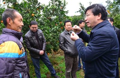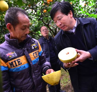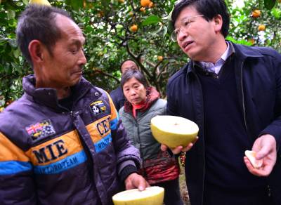 12月3日,建始县景阳镇龙家坝村3组67老农向红碧白柚柑橘果林里,前来的中国工程院士、华中农业大学校长邓秀新教授现场支招品种改良。2012年11月,国务院扶贫办、中组部、教育部等8部委联合行文,确定华中农业大学定点帮扶建始县以来,该县与建始县签订校企战略合作协议,大力开展科教、产业和智力扶贫,成效显著。连日来,邓校长带专家教授团队,深入建始猕猴桃、景阳薄壳核桃、“关口葡萄”蔬菜等特色产业田间地头,现场支招,加大科技支撑力度,让建始县特色产业规模与品牌效益凸显,帮助探索出一条具有地方特色的富民兴县特色产业发展之路。本报视界网刘波摄