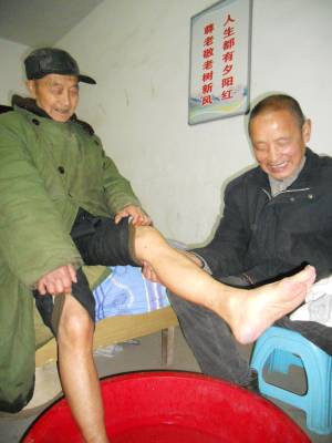 时值寒冷,汉川市刘家隔镇民政办考虑到镇社会福利院内高龄老人畏寒怕冷的实际情况,采取要求工作人员每天帮他们泡两次脚的办法御寒,给老人以“春天般”的温暖,此举受到院民高度赞誉。 图为12月5日,该镇社会福利院刘院长正在为高龄老人泡脚。 签约摄影师 邹开建 摄 通联:汉川市民政局 电话:13197382491 邮编:431600