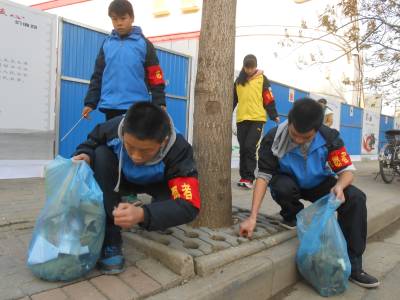 武汉市砺志(启新)学校的10余名师生周末参加社区文明创建活动