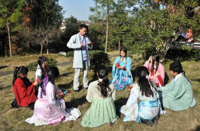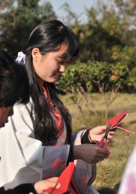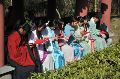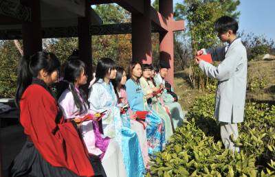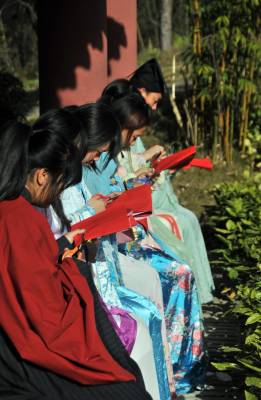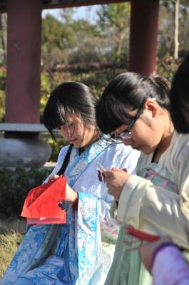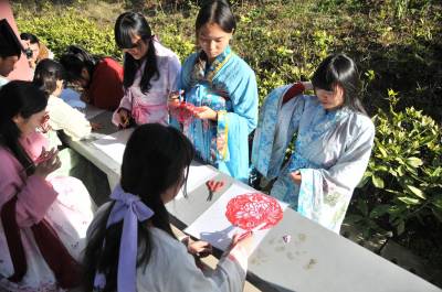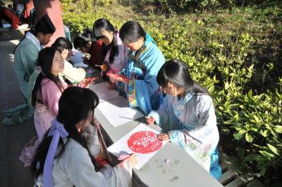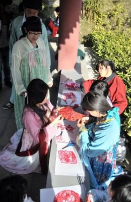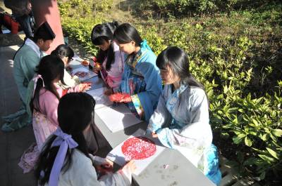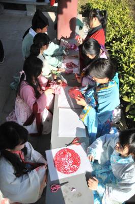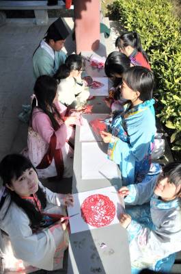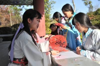 12月7日,湖北文理学院举办“剪剪纸 传传统”的剪纸进校园活动,提倡学生学剪纸,传承传统文化。 该校汉风襄韵汉服社成员穿起汉服,剪出各种剪纸作品,讲述中华剪纸文化的历史渊源和发展历程,让大家了解什么是剪纸、如何拿剪刀、怎么去剪出具有艺术特色的作品等内容。