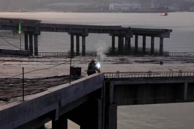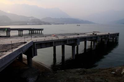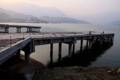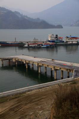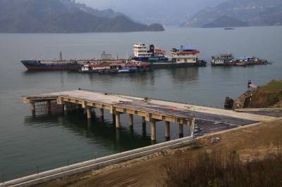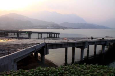 图为12月7日拍摄的秭归县三峡翻坝物流产业园货运码头(建设中)。