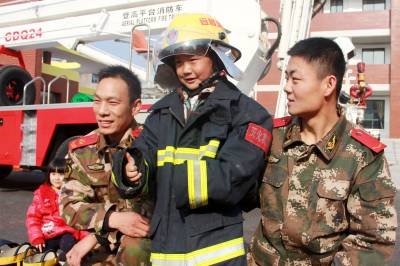 2014年12月5日,宜昌市夷陵区消防安全进校园直通车开进区直机关幼儿园冯家湾分园,当地消防官兵在校园模拟“119指挥中心”,围绕“我是小小消防员”主题,为孩子们演示常用救护器材的使用方法,讲解消防安全知识以及火灾自救方法,让孩子们进一步掌握了在危险中迅速逃生、自救、自护的基本方法,增强了消防安全意识。视界网 郭姝言 张国荣 摄