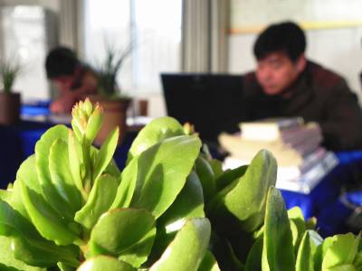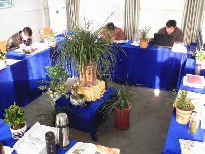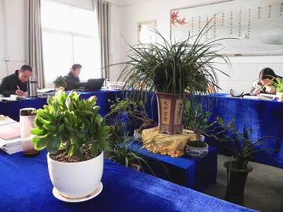 “绿满荆楚”园丁在行动 12月10日,郧县青曲镇初级中学教师在“绿美办公室”里认真工作。该校教师积极响应“绿满荆楚”行动,自发将自己培育的花卉、盆景等绿色观赏植物搬进校园,美化办公室,带来洁净空气和绿色工作空间。 (视界网 张传郧 摄 湖北省郧县青曲镇初级中学 13635714262 442531)