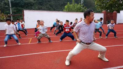 (通讯员 许光泽)日前,丁家营镇小学四(1)班学生在少年宫辅导员的指导下学练武当武术(图一)。
