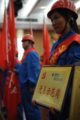 身份一亮得像榜样5月6日,利川市电力公司都亭供电所党员突击队冒雨来到腾龙工业园区两江源食品公司(图2),抢修配电装置(图1),确保公司正常生产。日前,利川市电力公司以一个简短的仪式,启动了包括党员示范岗、责任区和突击队等系列子活动的”亮身份、强素质、当先锋”党内主题实践活动(图6、8)。通过让党员代表公开表态发言(图5)、授旗、授牌(图3、4、7),实行党员岗位公示、挂牌上岗、佩戴标志,亮出身份,让党员自觉接受监督,增强荣誉感、责任感、使命感和自我约束意识,促使党员不断增强自身素质,争当先锋模范。(刘洪浩向华杰摄)