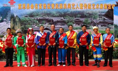 2010年”五一”期间,一批批远方客人来到人间土家吊脚楼群第一寨——宣恩县彭家寨、我国现存最完整的具有古代土家遗风的街市——宣恩庆阳凉亭老街观赏、游玩。有35万人,其中土家族、苗族等少数民族占70%的宣恩县,2008年11月被国家文化部授予”中国民族民间文化艺术之乡”。宣恩这块古老而神奇的土地,积淀和浓缩了极其厚重的民族民间文化,处处能让人感受到魅力独具而鲜活的巴风土韵。彭家寨和庆阳凉亭街是宣恩县民族民间古建筑文化艺术的最典型杰作,因其鲜明的土家族建筑特色和内涵博大精深的民族文化内涵,震惊、享誉中外。彭家寨45户、250余人,均系土家族。彭家寨吊脚楼群因自然地势而建,具有外形美、空间美、层次美、整体美的显著特征。中国古建筑专家、华中科技大学教授张良臬实地考察后赞叹道:”未了武陵今世缘,贫年策杖觅桃源。人间幸有彭家寨,楼阁峥嵘住地仙”。据介绍,庆阳凉亭老街其建筑与街巷空间互融。集市街巷忽而明亮,忽而没入过街楼,忽而连通风雨桥。街市空间与建筑一体化,吻合于欧美的现代城市设计思想。以绣花工艺、藤编工艺、古木雕刻为代表的民间工艺是宣恩县的一朵民族民间文化艺术奇葩。以周银菊为代表的1000多名心灵手巧的土家族妇女,刺绣凝聚土家刺绣文化的绣花鞋垫、绣花布鞋,美观大方,舒适耐用。民间艺人黄志鹏将千年古木加工、雕刻成”人物”、”动物”、”山水”、”花草”等时尚观赏品,产品具有多形态、硬度大、不起虫等特色,具有观赏价值和收藏价值。吕纪明、吕纪恩兄弟两从印尼进口优质藤,制作出的藤椅、餐桌等20多种藤制品,具有弯曲度好、色质好、耐用、不黑不发霉、低公害等综合特色。宣恩县民间民族舞蹈丰富多彩,寓意深刻,趣味横生。八宝铜铃舞是万物有灵的宗教文化观念在民间艺术中的遗存,其表演古朴优美,充满民族舞蹈的翩翩神韵。宣恩县民间吹打乐广为流传,每逢山里人婚丧嫁娶、节日庆典、庙堂祭祀、舞龙耍狮,都要请花锣鼓班子吹吹打打、热闹气氛。抛刀是宣恩县民族民间文化艺术品种之一,表演者在锣鼓班子的伴奏下,将2把或多把亮晃晃的尖刀或菜刀同时抛向空中,做出多种动作,有惊有险,常令观众目瞪口呆,身冒冷汗。宣恩县的民族民间文化艺术之花璀璨夺目,受益面广,社会影响大。中央音乐学院等大专院校的教授学者多次实地专访;中央电视台等多家主流媒体多次作过专题报道;宣恩县的民族民间文化艺术在增强民组团结,促进新农村建设,增加农民收入等多方面作出了突出贡献。绣花工艺品、藤编工艺品、古木雕刻品成为武汉、北京、广东等国内大中城市消费者的抢手货,绣花鞋垫、绣花布鞋还远销到澳大利亚,年销售收入100多万元;当地及附近农民每逢农历二、五、八在庆阳凉亭老街集市交易竹制品等多种特色地产品,年成交量1000多万元。如今,宣恩县正抓紧做好民族民间文化的保护、挖掘、传承和利用,一批在民族民间文化的保护、挖掘、传承和利用方面做出贡献的民族民间艺人受到县政府表彰。(签约摄影师汪盛华田长英段太儒)