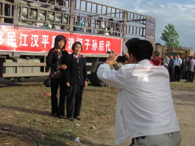 我们把故乡带走了(通讯员:柯常武单位:十堰市郧县安阳镇政府邮编:442515电话:15571900508)5月6日下午,郧县安阳镇青龙村移民李德明用相机拍摄下故乡的美景,并且与家人在搬迁货车的大幅宣传标语”移民汉江平原,造福子孙后代”下留影纪念。临行前,李德明一家翻看着相机里的照片,高兴地笑着说:”我们把故乡带走了。”9点10分,李德明一家与乡亲共834人,作为郧县移民试点的第二批搬迁对象,集中乘车迁往团风县。