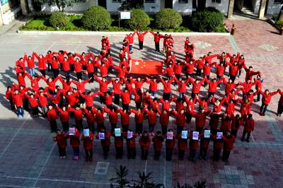 “我们爱祖国,我们爱澳门” 12月16日,湖北省郧县柳陂镇中心小学举办“我们爱祖国、我们爱澳门”主题活动,学生们在操场上手拉手摆成澳门区旗“莲花”图案,唱“我爱你中国”“七子之歌”、祝福“澳门明天更美好”等形式,迎接12月20日澳门回归祖国怀抱15周年纪念日的到来。 (供稿:湖北省郧县柳陂镇中心小学 杨显有 13277199605 442532)