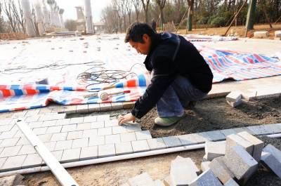 12月16日,技术工人正在对郧县郧阳岛各项旅游项目建设进行最后装饰和美化施工。郧阳岛旅游专用码头,展示中心,明代郧阳老街和府学宫复建,郧阳博物馆,渡假区,街道,广场等项目工程进入装饰和景观施工,南水北调中线工程畜水使郧阳岛成为旅游,渡假,休闲的好去处。 视界网 周家山 摄