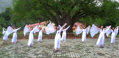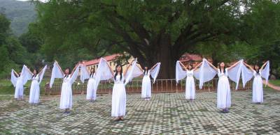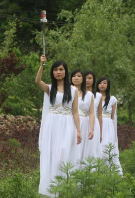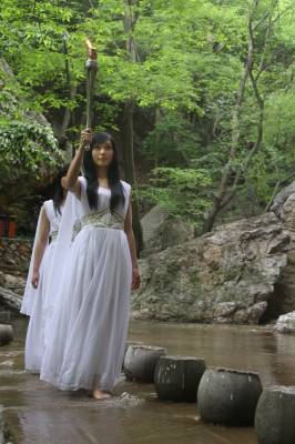 炎帝采集圣火在随州点燃本报视界网杨文明摄影报道 5月6日,2010世界华人炎帝故里寻根节圣火采集仪式在大洪山风景区宝珠峰点燃。当日上午,九位圣女身穿白色长裙,赤着双脚,虔诚地带着采集的火种,沿着大洪山风景区灵山秀水前行。 此次圣火采集由湖南金鹰传媒策划,并同步取景拍摄工作,一直取景到炎帝神农故里。采集的火种将到寻根节拜典开幕式圣火台点燃。 图一:圣火采集在海拔1050多米的宝珠峰点燃。 图二:九位圣女开张双臂,在古银杏树下仰望苍穹,虔诚为先祖祈福。 图三:圣女们带着圣火,踩着叮咚作响的清泉,沿着长满野花的小径前行。