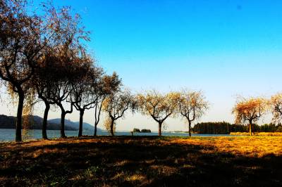 在我们身边,也有许多秋的美景,武汉东湖三大主要景区的秋色,也让人多了一份回忆和眷恋。当你站在“磨山景区”的楚天台上,让你一览山下之秋色,你也会变得气宇昂扬,枫树的叶子从夏的翠绿变成秋的金黄,还有林中的杨柳、桦木、榆树汇集成一年中最壮美的景色,连那碧绿的草坪也像赶趟似的,也换上了“皇帝的新装”,你也多了一份温柔美妙的秋韵。在“听涛景区”里,你可沿着弯弯曲曲的湖边长廓,任秋风拂面任杨柳摇曳;当你行至楚风园时,这里荷、柳、桑、枫植物众多,你既可观赏落英缤纷。又可听金涛拍岸,有“落霞与孤鹜齐飞,秋水共长天一色”之感概。还有近期开发的“落雁景区”,有着更加迷人的风采,她那得天独厚的自然风光造就了它的秀美,四个向湖中沿伸的半岛,湖边的芦苇在秋日里,也变成一片金黄,当你站在雁洲铁索桥上,踏上木板的桥面,远看:群山逶迤波光粼粼;近听:林涛奏乐虫鸣鸟唱,仿佛置身于一片秋天的童话里,让人肆意挥霍秋的壮美,享受秋的盛宴。
