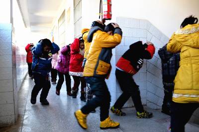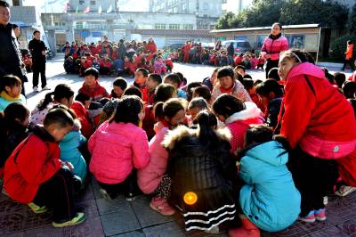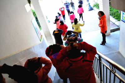 每月一练 12月17日,湖北省郧县柳陂镇中心小学学生举行应急疏散逃生安全演练活动。在警铃响起后,全校907名同学按照规定的路线快速、有序地从教室中撤离到操场并整齐地站好队伍,用时仅28秒。本学期该校严格按照教育部今年出台的《中小学幼儿园应急疏散演练指南》要求,每月开展一次演练。 (供稿:湖北省郧县柳陂镇中心小学 杨显有 13277199605 442532)