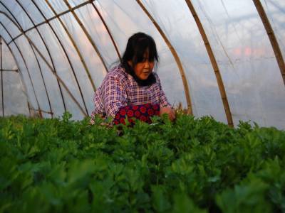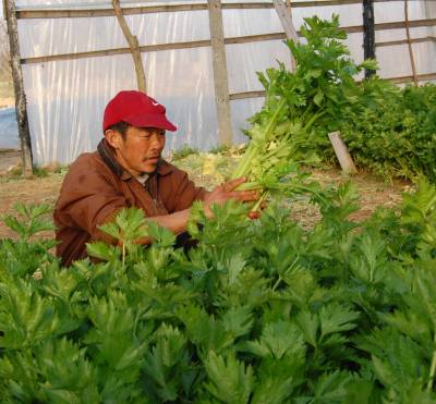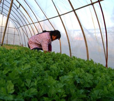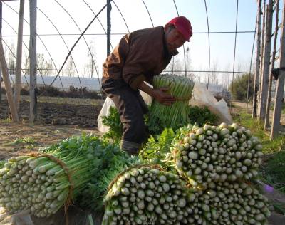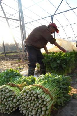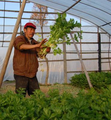 云梦菜农喜收大棚菜供应冬日市场 2014年12月17日,云梦县城关詹桥村菜农在蔬菜大棚中收获鲜菜。云梦城关、隔蒲谭、道桥等乡镇大棚蔬菜集中产地,菜农施用有机肥、无公害科学种植大棚菜,冬日的大棚中热气腾腾,大棚菜喜获丰收。连日来,当地菜农将蔬菜大棚中收获的芹菜、莴笋、茼蒿等鲜菜经运销户销往孝感、武汉、随州、河南等地供应冬日市场,让人们在冬日享受青菜美味,受到消费者喜爱。 本报视界网 陈保忠 摄