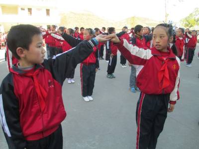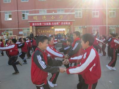 艺术教育进校园 为丰富学生的校园生活,培养学生的艺术素养,落实素质教育。今秋,竹山县潘口小学大力“开展大家唱大家跳”艺术教育活动。让学生在甜美的歌声和美妙的舞蹈中体验童年的幸福,挥洒童年的记忆,感受美、体验美、诠释美,促进学生全面发展。图为12月17日该校举行校园集体舞比赛情景。(本报视界网 王定生 摄)(联系电话15347279289)