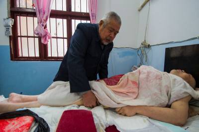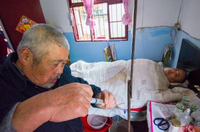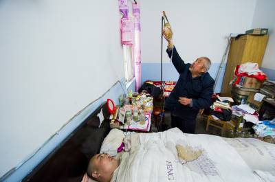 儿子瘫痪14年 7旬老农自学打针