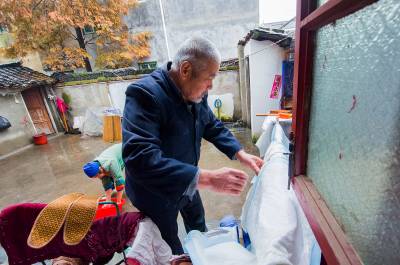 大儿子一家常年在外打工,家里只有杨光星和老伴及小儿子三个人,老伴在田间劳作,他就在家照顾小儿子。每天早上7点,杨光星起床就开始忙碌:倒尿盆、冲尿、挂药瓶、洗脸、翻身、洗尿布、做饭,然后又为儿子挂第二瓶药。直到下午两点以后,他才能轻松一下。