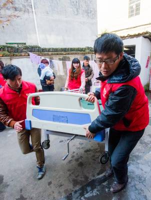 此事于2014年12月10日在《孝感晚报》报道后,当天就引起当地爱心人士的关注,大家被七旬老农自学打针照顾瘫痪儿子14年的事感动,纷纷要捐款买医用床解决老人的燃眉之急。其中,云梦县一个叫帅贞誉的义工听说此事后,主动捐赠了家里闲置的一个医用床,满足老人的心愿。12月13日,当地义工趁休息的时间,将医用床送到了老人家里。