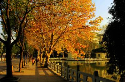 校园内风景如画,楼台亭角随处可见,虽说是初冬季节看不到杨柳依依,但也有梧桐银杏相伴,怎一个美字了得;湖畔长廊,成群结队的学生走向教室;公园校舍,诵诵读书声不绝于耳;绿荫场上,校园球赛酣战未已,广场一侧,锅庄舞精彩纷呈,那舒展优美的舞姿,吸引众多的校园师生围观,是学校一道亮丽的风景。.
