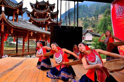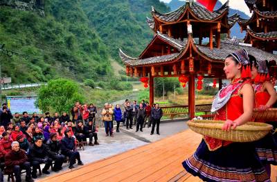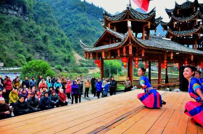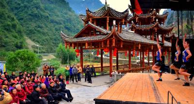 吊脚楼前看大戏 风雨桥头幸福满