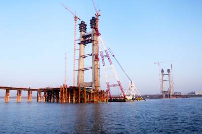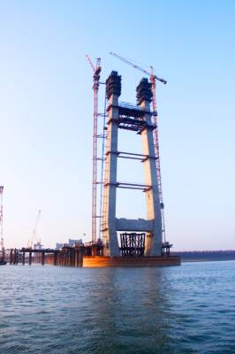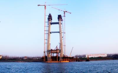 本报荆州讯(通讯员 孟庆虎) 12月19日,由中铁大桥局承建的蒙西华中铁路公安长江大桥4号主塔墩已进入上横梁施工阶段,这标志着公安长江大桥主塔墩施工又取得了重大进展。 公安长江大桥是国内首座跨越长江的重载铁路桥梁,大桥采用公铁合建方式,主桥为双塔钢桁梁斜拉桥,主跨518米,主塔墩高度182.5米。目前,4号主塔墩施工高度已达152.9米,主塔上横梁采用支撑于塔柱预设牛腿上的桁梁式支架施工方案,混凝土分两次浇筑,计划12月底完成,实现年内施工生产总目标。