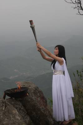 炎帝采集圣火在随州点燃本报视界网杨文明摄影报道 5月6日,2010世界华人炎帝故里寻根节圣火采集仪式在大洪山风景区宝珠峰点燃。当日上午,九位圣女身穿白色长裙,赤着双脚,虔诚地带着采集的火种,沿着大洪山风景区灵山秀水前行。 此次圣火采集由湖南金鹰传媒策划,并同步取景拍摄工作,一直取景到炎帝神农故里。采集的火种将到寻根节拜典开幕式圣火台点燃。 图一:圣火采集在海拔1050多米的宝珠峰点燃。 图二:九位圣女开张双臂,在古银杏树下仰望苍穹,虔诚为先祖祈福。 图三:圣女们带着圣火,踩着叮咚作响的清泉,沿着长满野花的小径前行。