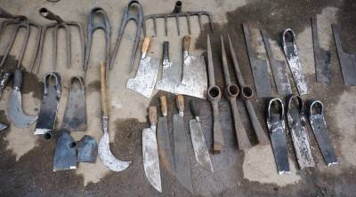 如今阮师傅打制的挖锄,杈子,扒子,十字镐,瓦刀,砍柴刀,杀猪刀,砍骨刀,刨子,吊肉钩,特制耙钉,钢钎,铲子等还是十分的热销,可是阮师傅说:"那一天真的打不动铁了,他的60多件打铁工具和手艺真不知传授交给那一个接班人"。