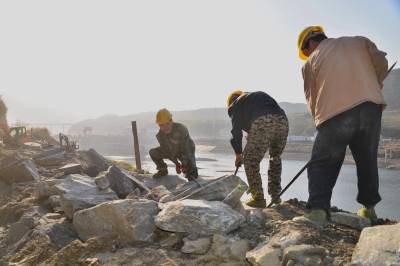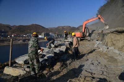 12月23日,竹山县潘口乡悬鼓洲村230米长县乡公路下陷路段工程治理正紧张施工,确保元旦公路修复通车。该县处青峰和扬日湾两条断裂带上,受轻频地震和大型工程影响,地质滑坡、岩崩等地质灾害点达831处,受影响群众达2.5万人,该县按照“先急后缓、先重后轻、防治并举,集中安置”的原则为受灾区群众提供安全保障,先后在全县17个乡镇建齐了雨量监测站,对23个大中型滑坡体进行工程治理,对居住相对分散受滑坡威胁的27个村、8700人口进行整体搬迁集中安置, 10年来无一起地质灾害安全责任事故发生。石濡华 陈昌荣 摄