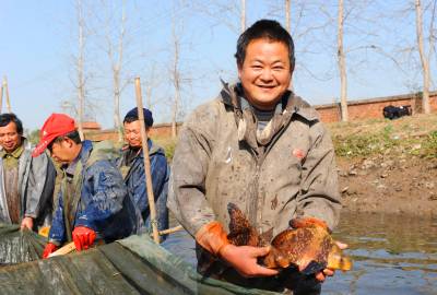 元旦临近,象征着幸福、吉祥胭脂胭脂俏销12月 23日,嘉鱼县美嘉水产合作社繁殖胭脂鱼起捕,分检,销往河南,沈阳北方市场目前已销全国各地达500多万尾,年产量达600万尾,嘉鱼美嘉水产合作董事长黄杨军边分鱼,边介绍,我们这个鱼养成规格苗14到15公分的鱼,基本销河南、沈阳北方花鸟市场管赏鱼,再大一点鱼一斤多的走市场,卖30多元一斤。他们繁殖胭脂鱼色彩绚丽,深受客户青睐。