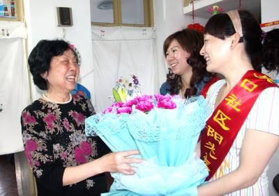 ”阿姨,5月9日是母亲节,我们提前祝您节日快乐!”昨日,荆门市东宝区泉口街道泉口社区青年志愿者们来到空巢老人家中,与老人们共同庆祝母亲节,让老人们在充满爱心、和睦的社会大家庭里感受人间的关爱与温暖。图为志愿者将鲜花献给老人。荆门晚报记者张庆通讯员胡进波摄