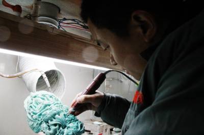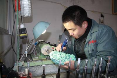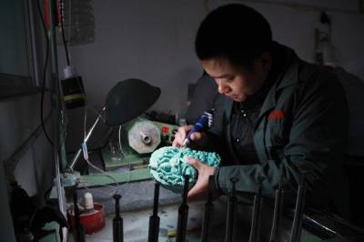 12月24日,竹山县宝丰镇红星绿宝工艺厂的雕刻师正在精心雕刻绿松石。近年来,该县坚持科学开发、集约发展、品牌经营、永续利用的原则,走绿松石产业转型发展之路。把绿松石与女娲文化、生态旅游、珠宝饰品结合,放大绿松石产业效益。2015年,全县绿松石产业力争实现产值50亿元、利税5亿元。