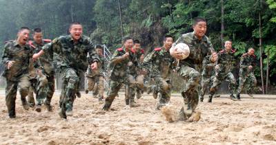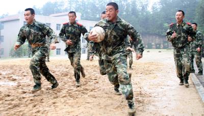 > 恩施:”90”后武警学员自创军营”中式橄榄球”