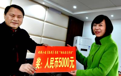 2014年12月25日下午,由湖北省南漳县作家协会和南漳县审计局联合举办地“水镜杯,审计情”文学大赛落下帷幕。大赛自当年4月启动以来,收到了北京、江苏、四川、浙江、武汉和本土文学爱好者的小说、诗歌、散文等作品等200余篇。其中34篇作品分获一、二、三、优秀奖和新人奖。坐在轮椅上的残疾作者蔡红光的中篇小说《五六式半自动步枪》和女作者张方的短片小说《两个人的村庄》夺得桂冠。颁奖现场,该县县委、县政府、县委宣传部等还为当年荣获湖北省最高文学奖的赵丽颁发了5000元的奖金。