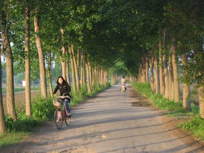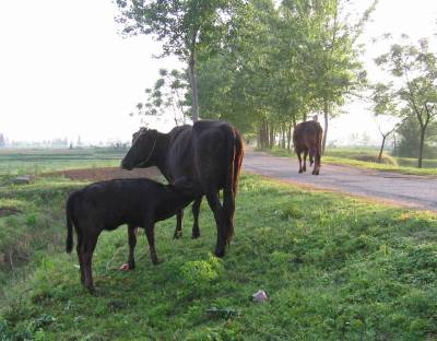 《春晨》5月7日早晨,阳光从东方升起,孩子们骑车迎着曙光上学,牛妈妈带着牛犊享受着春天早晨的阳光,村妇在水塘边洗涮衣物,春天的早晨,给人宁静、温馨和勃勃朝气。