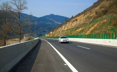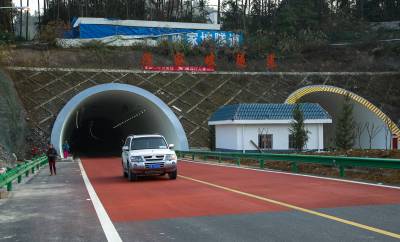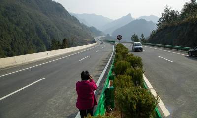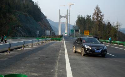 2014年12月23日,一辆汽车行驶在即将竣工通车的恩来高速公路上。