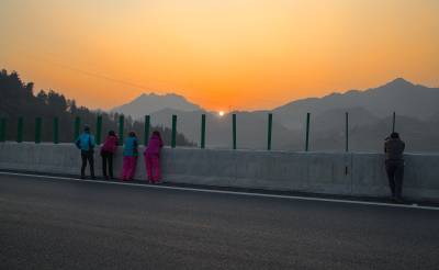 2014年12月23日,在恩来高速公路中建河段附近拍摄的落日美景。