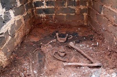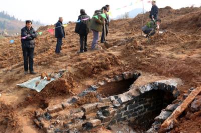 近日,宜昌市夷陵区在陈埫坪村原小学东南部山包施工现场,发现一座青砖双室合葬墓,当地文物保护部门当即对现场进行勘察,两个约长2.7米、宽0.8米、高1.2米大小的墓室呈大致东西向并列,中间为厚约30CM的隔墙,单个墓室呈大致南北走向,两个墓室大小、形制结构基本一致,推测为夫妻同坟异穴合葬墓,确认墓葬年代为明代。
