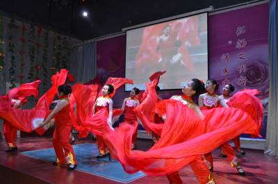 12月26日晚,湖北省大悟县举办庆元旦暨“最美家庭”颁奖晚会。为弘扬社会主义核心价值观,倡导文明和谐社会新风尚,此前该县开展了“寻找最美家庭”活动,历时9个多月,最终在全县评出10户“最美家庭”。并颁发了奖杯和荣誉证书。图为颁奖晚会的歌舞把节日的气氛烘托得喜气洋洋。( 杨晓明 拍摄)