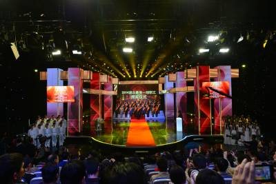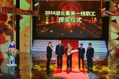 这是2014“湖北最美一线职工”授奖仪式现场的一幕。当晚,31名“湖北最美一线职工”走上舞台,接受家人、工友、学生的授奖。段党委副书记、工会主席肖锋出席了授奖仪式。