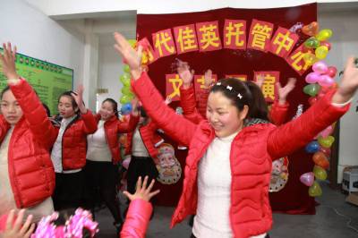 12月27日星期六,竹山县宝丰镇时代佳英留守儿童托管中心开展爱心互动迎新年活动,10余名“爱心妈妈”和留守儿童一同表演了舞蹈、相声等10多个精彩节目,表达了对新年的美好祝福和深切期盼。同时,该托管中心还开展“争当代理妈妈”、“与留守儿童结对子”等关爱活动,让留守儿童开开心心迎新年。